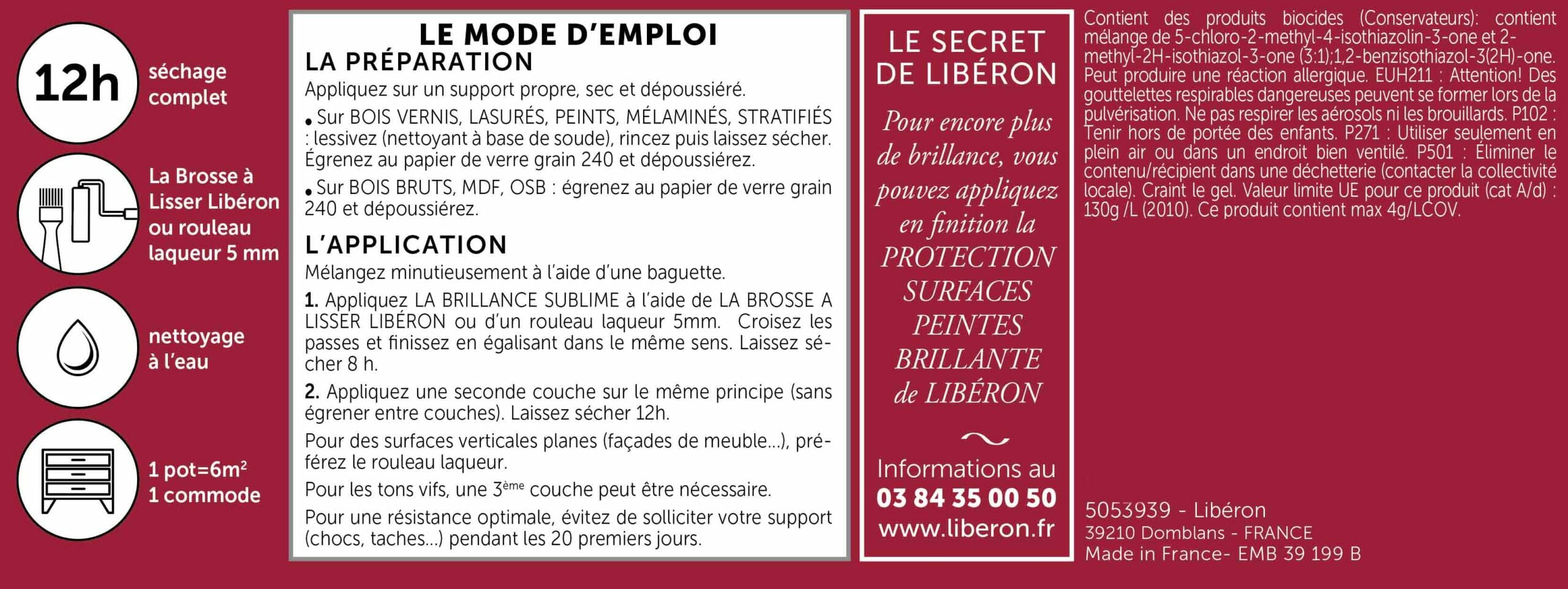 Pour encore plus de brillance, vous pouvez appliquez en finition LA PROTECTION SURFACES PEINTES BRILLANTE de Libéron.