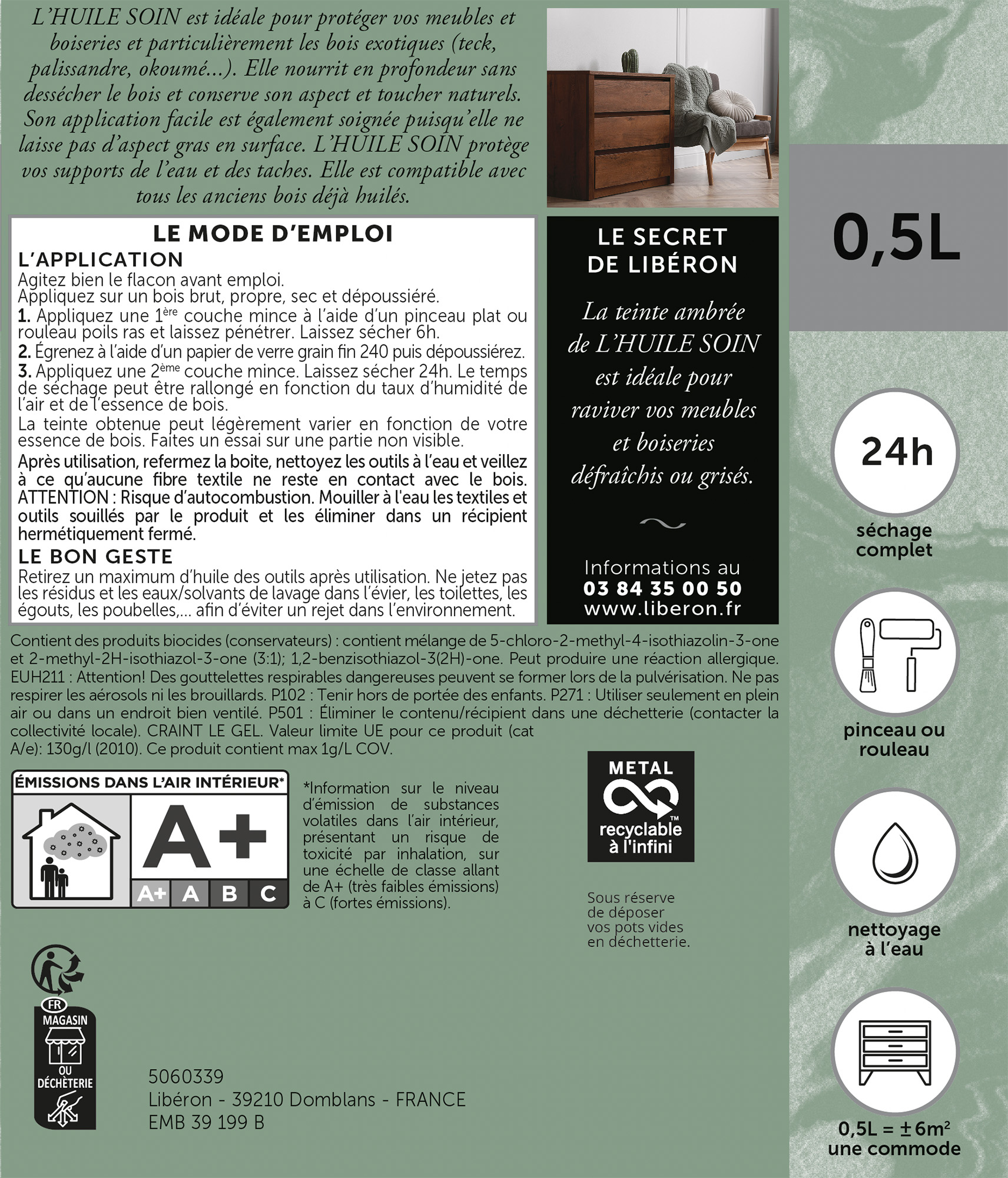 L’HUILE SOIN imperméabilise vos supports de l’eau et des taches.