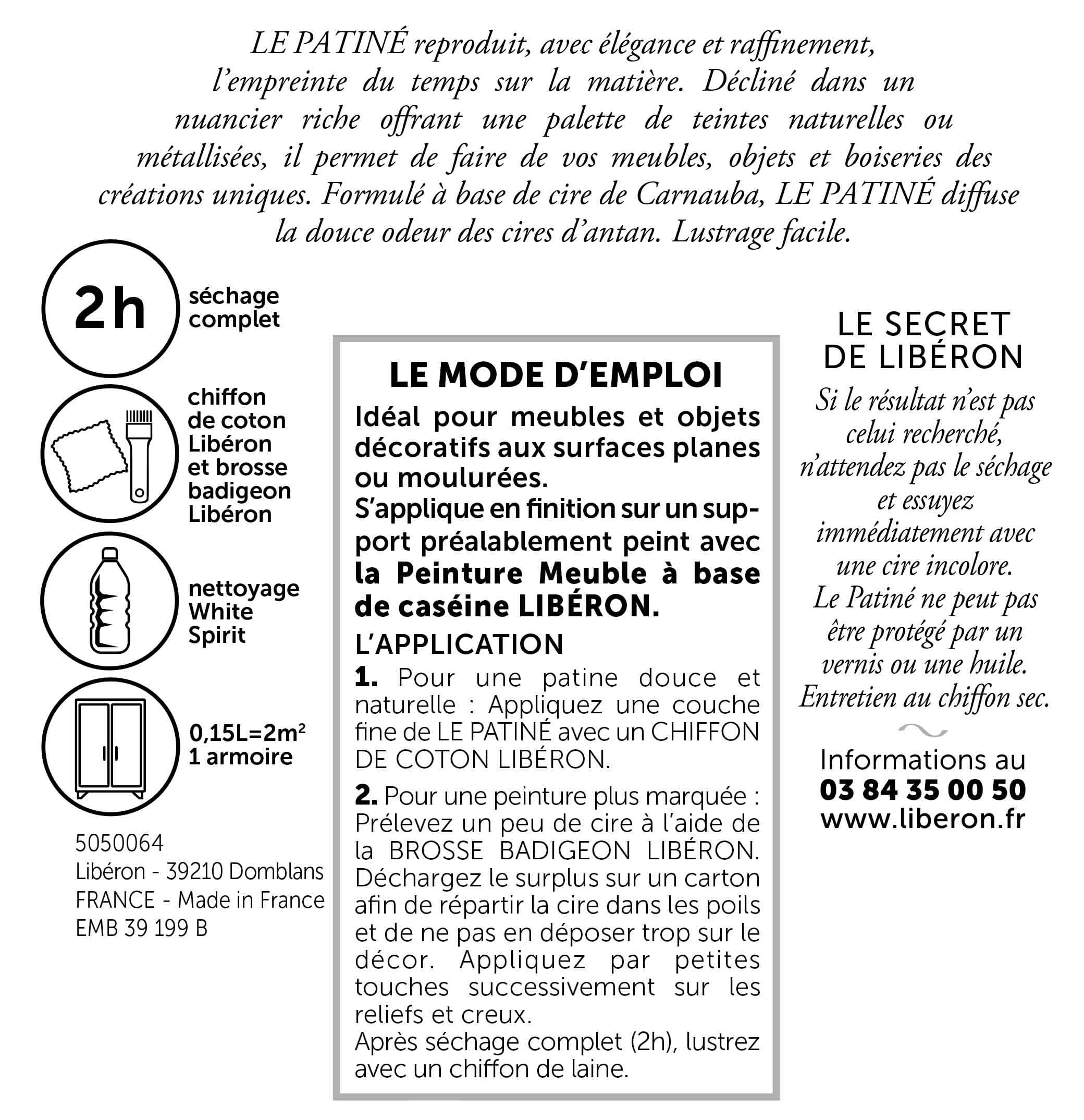 Il vous suffit d’appliquer Le Patiné à l’aide d’une Brosse Badigeon Libéron.