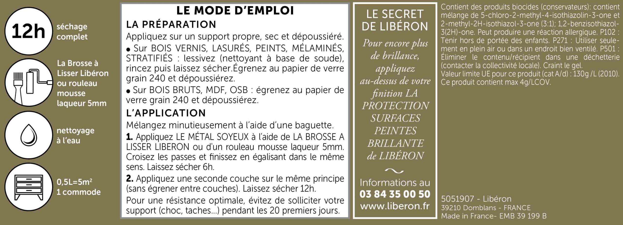 La peinture Métal Soyeux, Métal Poudré ou Métal Absolu Libéron doit être appliquée en couche suffisamment épaisse afin d’obtenir la bonne couleur finale.