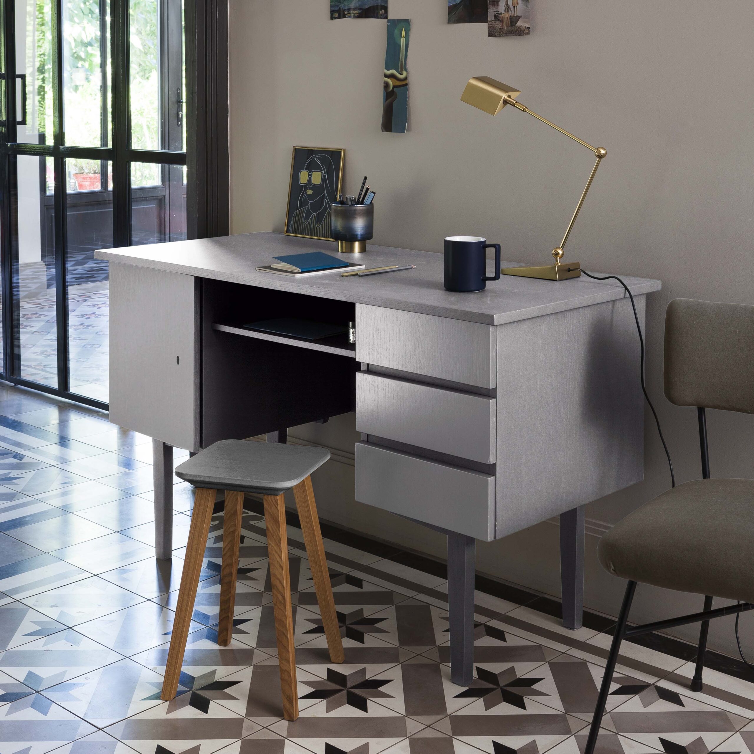 La peinture meuble bois « Le Métal Soyeux » joue les reflets chatoyants et illumine de précieuses nuances métalliques.