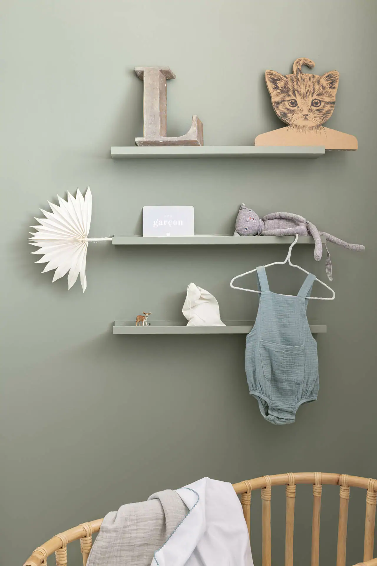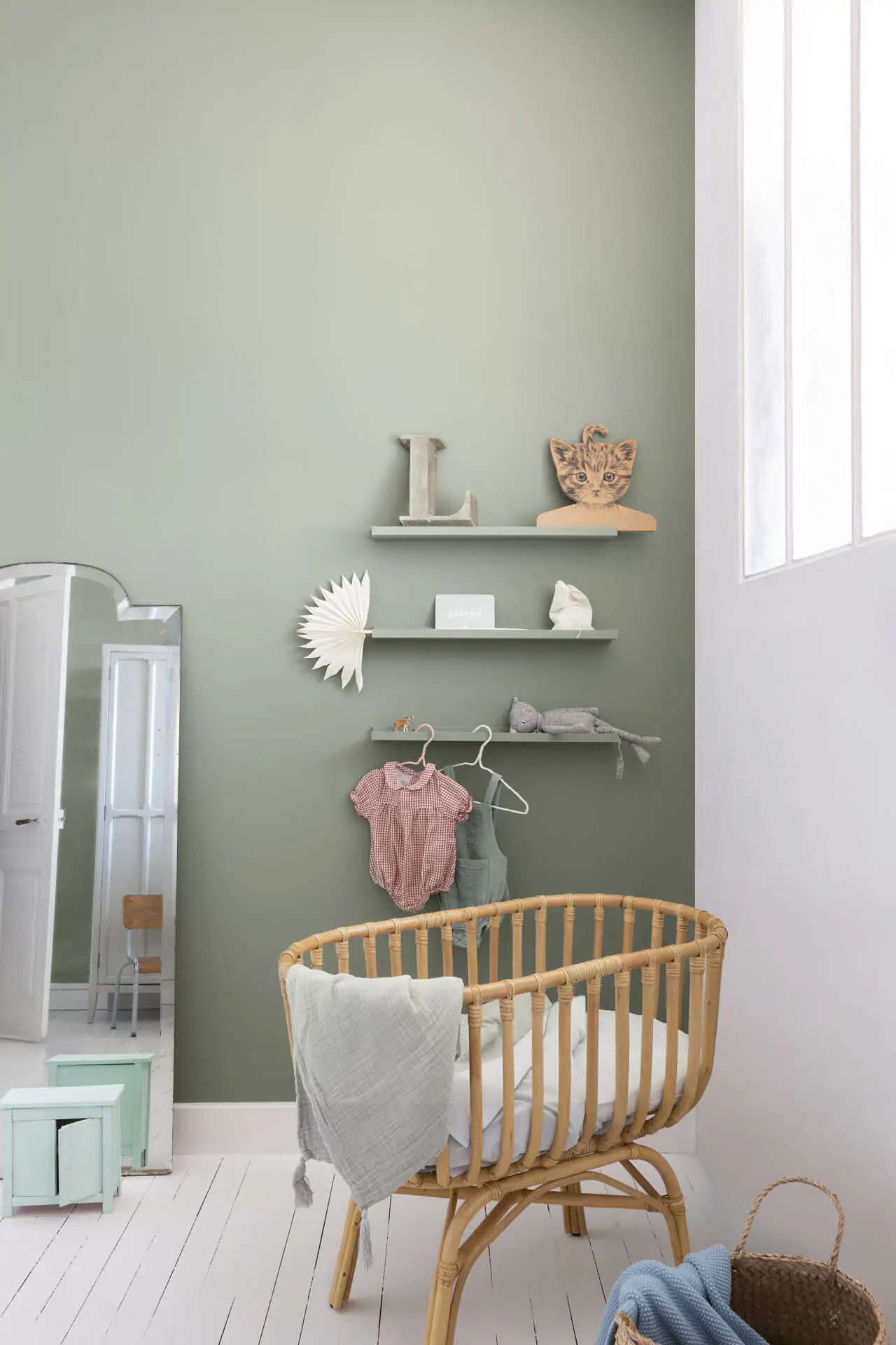 Plus foncé et plus froid que le Blanc Edelweiss, ce kaki bleuté donne une atmosphère réconfortante et reposante. On l’imagine d’ailleurs très bien dans une entrée style années 30, où moulures et carrelages anciens seraient sublimés par son élégance discrète.
