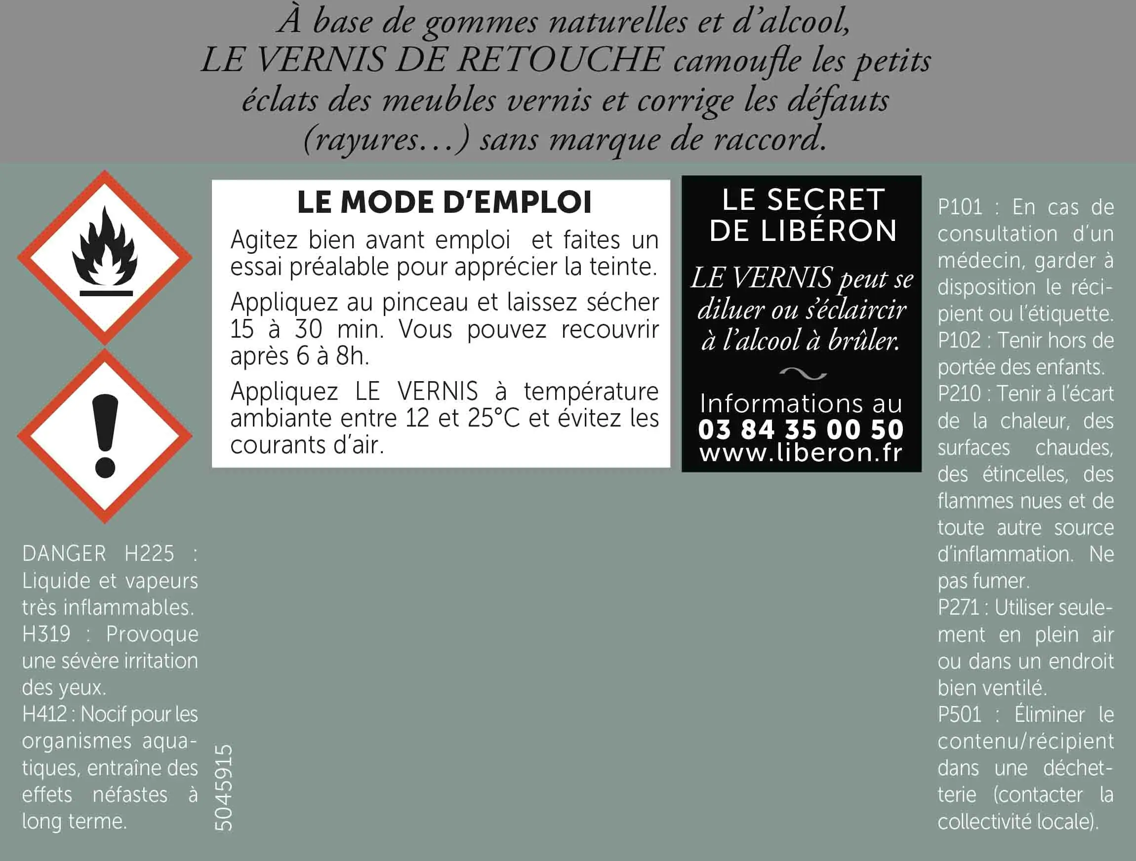 À base de gommes naturelles et d’alcool, Le Vernis De Retouche répare les petits éclats des meubles vernis et corrige les défauts (rayures…) sans marque de raccord.